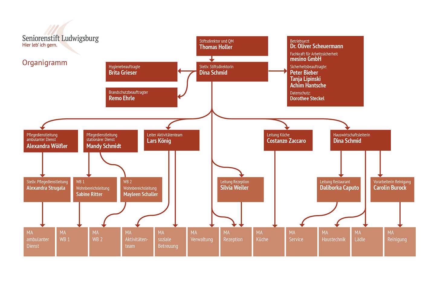 Die mC Seniorenstift Ludwigsburg gGmbH ist als leistungsorientiertes Unternehmen von der Wichtigkeit gut ausgebildeter und aufgeschlossener Mitarbeiter überzeugt. Das gute Organisationsklima bildet die optimalen Voraussetzungen für eine systematische Förderung und Weiterbildung im Rahmen einer teamorientierten und vertrauensvollen Zusammenarbeit. Alle Mitarbeiter kooperieren Abteilungs- und Hierarchie übergreifend. In der Alltagspraxis bedeutet dies: kurze Entscheidungswege über wenige hierarchische Instanzen, Förderung der Entscheidungsfähigkeit sowie eine sachlich freundliche und unkomplizierte Zusammenarbeit.